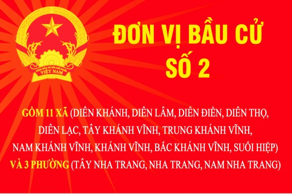 Trân trọng giới thiệu đến cử tri trong tỉnh chương trình hành động của những người ứng cử đại biểu Quốc hội khóa XVI tại Khánh Hòa tại Đơn vị bầu cử số 2 (Gồm 11 xã: Diên Khánh, Diên Lâm, Diên Điền, Diên Thọ, Diên Lạc, Tây Khánh Vĩnh, Trung Khánh Vĩnh, Nam Khánh Vĩnh, Khánh Vĩnh, Bắc Khánh Vĩnh, Suối Hiệp và 3 phường: Tây Nha Trang, Nha Trang, Nam Nha Trang).
